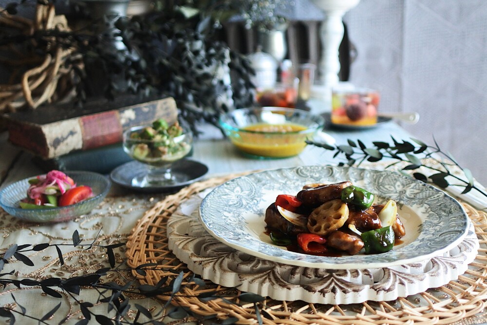 - 豚肉と野菜の黒酢あんかけ